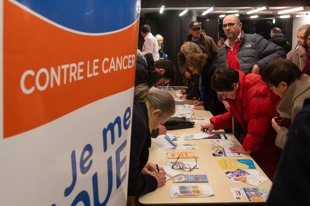 Après la séance, dans le hall de sortie, les personnes, qui l'ont souhaité, ont pu faire un don. Ce sont des bénévoles de la Ligue contre le cancer de Paris qui les ont collectés. Et d'autres bénévoles de l'association ont répondu aux questions.