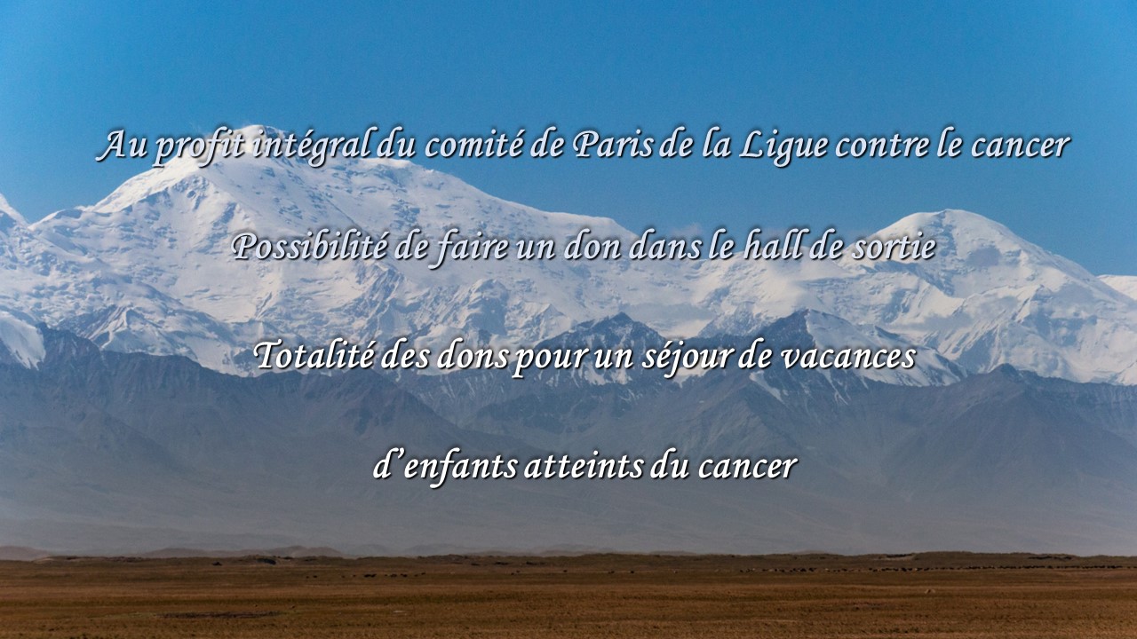Cette ciné-conférence du 3 février, je l'ai organisée, au cours de ces 12 derniers mois, au profit intégral de la Ligue contre le cancer de Paris. J'organise et réalise ce type de séance bénévole, en moyenne tous les deux ans, depuis 15 ans, alternativement à Paris et à Lyon, au profit intégral d'associations (je change quasiment à chaque fois) que je choisis, dont je ne suis pas membre. Le projet de destination des dons est un critère majeur de choix de l'association.
