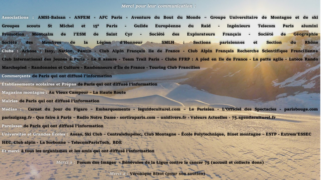 Merci à tous ceux qui ont accepté ma demande de communiquer sur cette séance au cours de tous ces derniers mois, et merci à tous ceux, organismes et amis, qui ont relayé l'information.