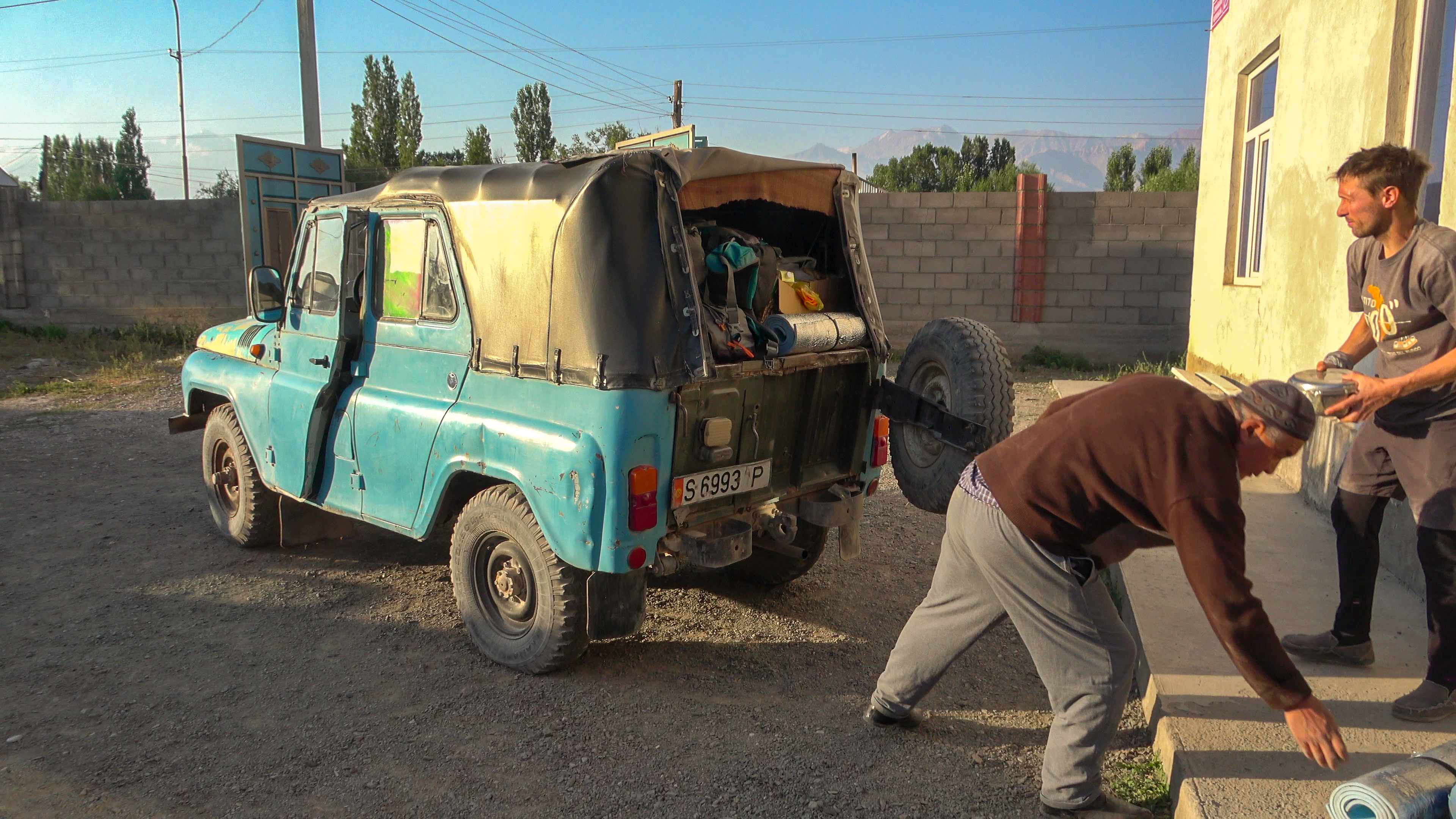 A 7hoo du matin, le véhicule a démarré, nous partons vers le camp de base. À l'entrée de la vallée Altyn Daria, nous nous arrêtons au poste de police. Nos laisser-passer et nos passeports sont vérifiés. Nous recevons l'accord de rentrer dans la vallée.