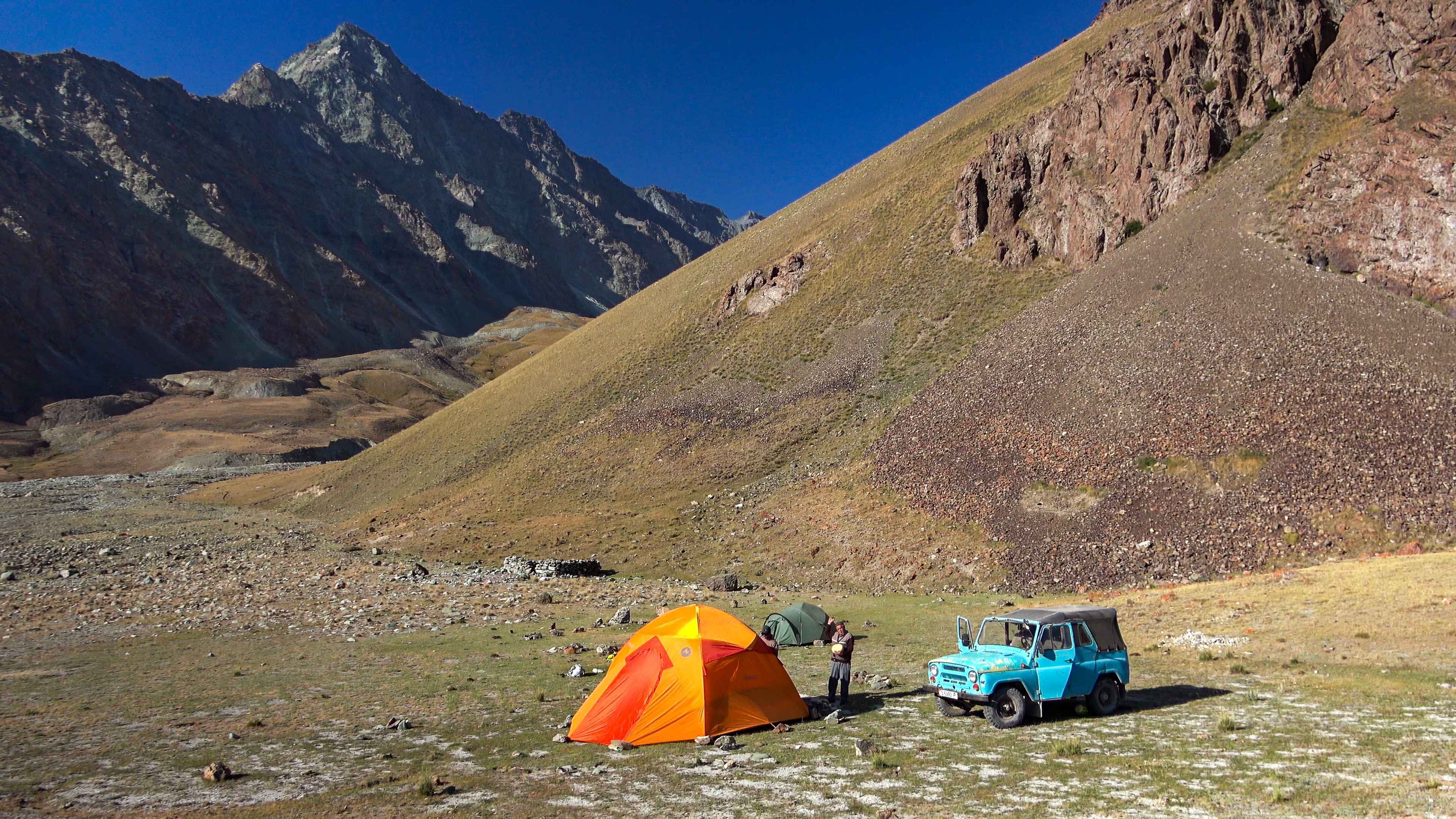 Coordonnées GPS du camp de base : N39,296368 - E72,251673 - Alt 3354 m