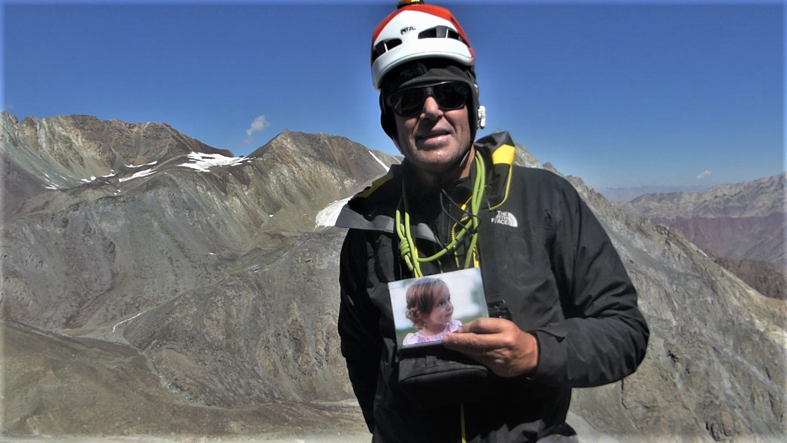 J’ai été particulièrement heureux de dédier, avec l’accord de Nikolaï, cette voie, ainsi que cette montagne, à Espérance — en langue russe надежда — 2 ans, atteinte d’arthrogrypose, et, à travers Espérance, à ses parents. Ainsi qu’à toutes les personnes atteintes par l’une des maladies exprimées par ce syndrome. La voie Espérance sur le pic Espérance.