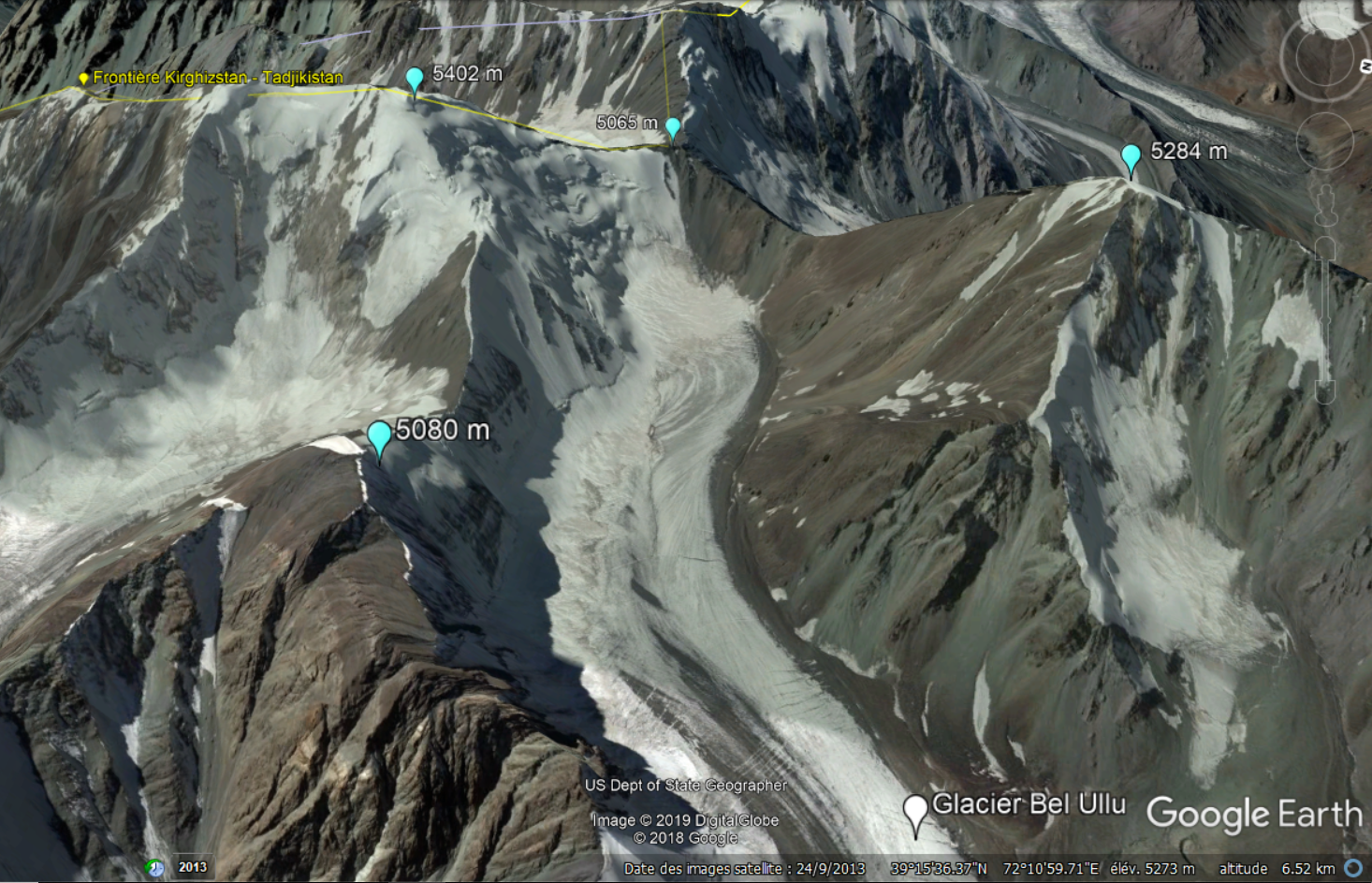 En 2019, j’étais allé dans la partie ouest de la chaîne Trans Alaï, une zone « quasi incognita », definie ainsi par Vladimir Komissarov, qui regorge de sommets vierges. Avec Nikolaï, nous avions choisi une vallée secondaire de la vallée Altyn Daria, appelée Bel Uluu, très peu explorée, et qui débouche sur un glacier qui n’avait jamais été foulé auparavant. Cette vallée Altyn Daria, je l’avais découverte dans un récit de 1960, Nos amies les cimes de Jean Vernet. Et j’avais pu obtenir des informations actualisées grâce à l’excellent Guide de l’alpinisme au Kirghizstan de Vladimir Komissarov, très complet et précis.