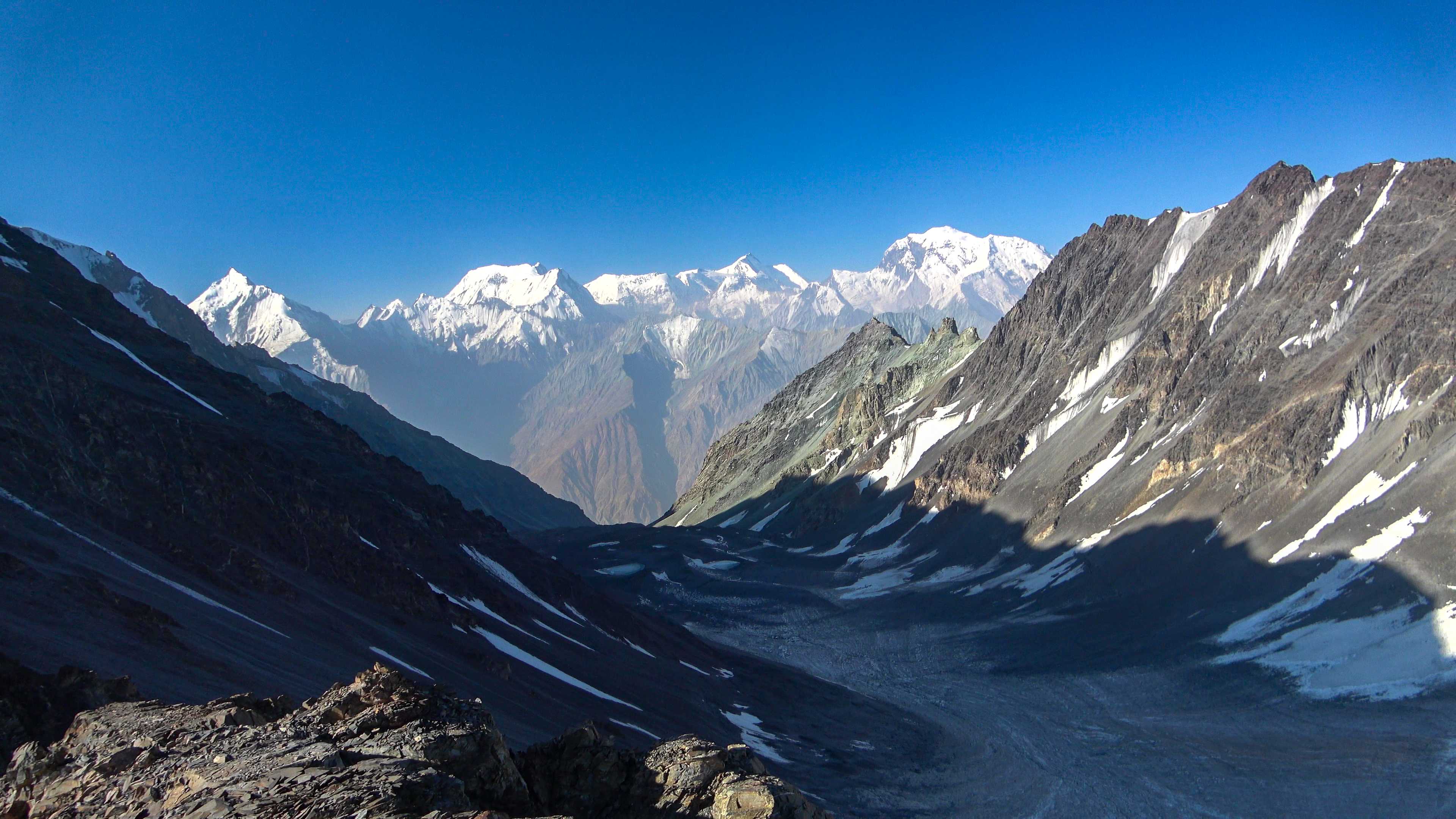 Les paysages sur 360° sont magiques ! Côté Tadjikistan, des montagnes enneigées et imposantes se détachent au loin. À l'est, les vues sont splendides sur le glacier Bel Uluu et les montagnes qui l'entourent.
